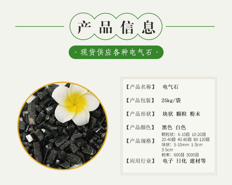 滑石粉、电气石、石英砂、金刚砂、氧化铁、石墨粉、陶瓷球、膨润土、矿化球、高岭土、硅藻土、云母、氧化铁颜料、托玛琳球、防火涂料、岩片、仿瓷沙、纤维、火山石、铁粉、钙粉、远红外粉、玻璃微珠、夜光石、雨花石
