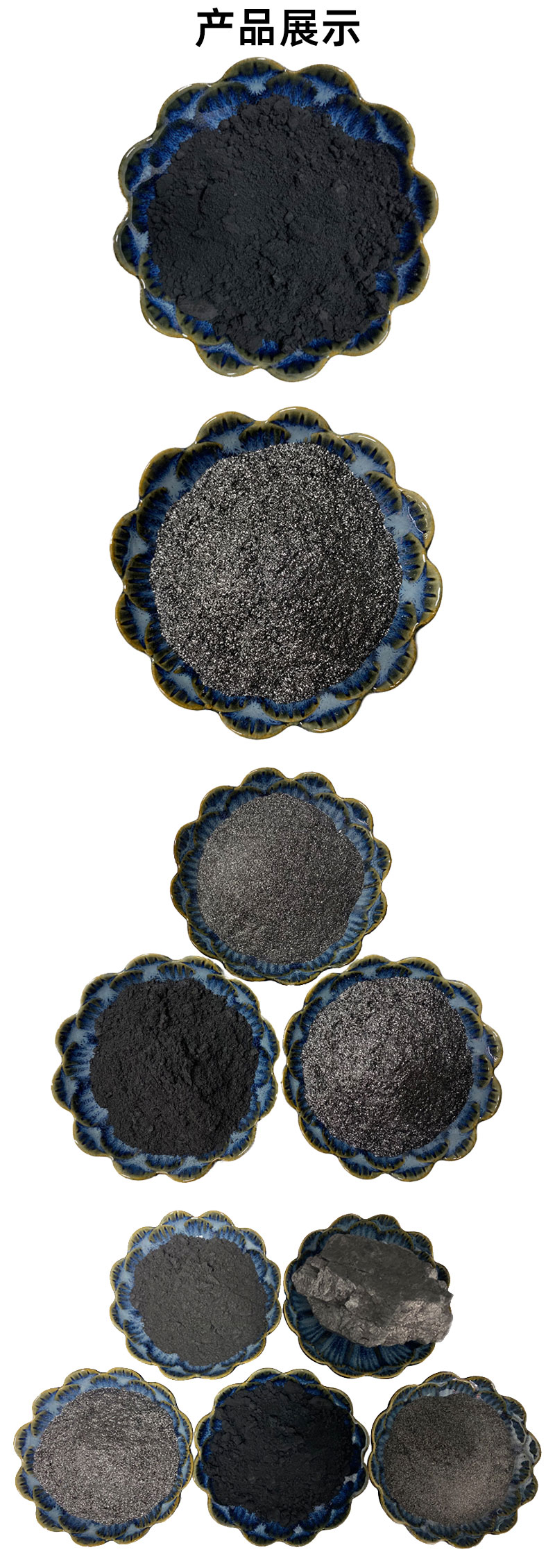 滑石粉、电气石、石英砂、金刚砂、氧化铁、石墨粉、陶瓷球、膨润土、矿化球、高岭土、硅藻土、云母、氧化铁颜料、托玛琳球、防火涂料、岩片、仿瓷沙、纤维、火山石、铁粉、钙粉、远红外粉、玻璃微珠、夜光石、雨花石