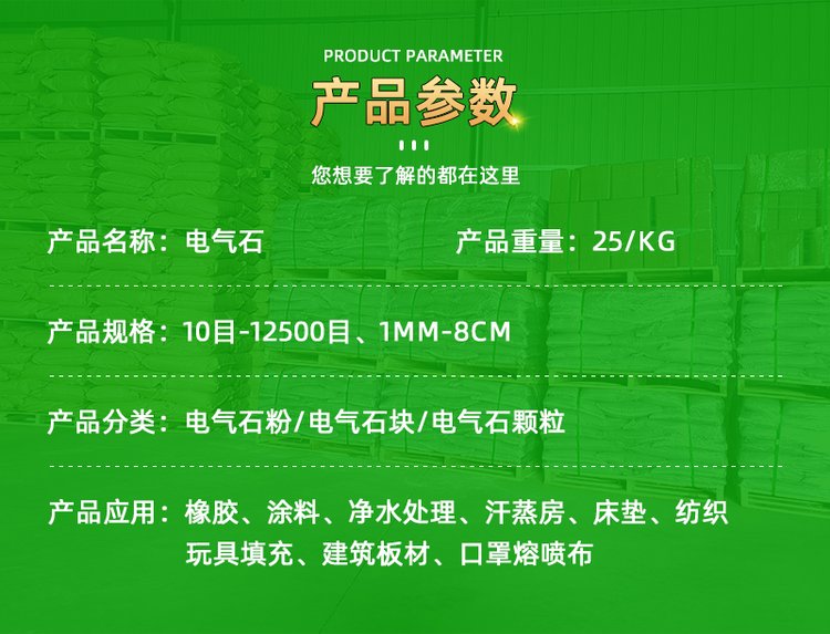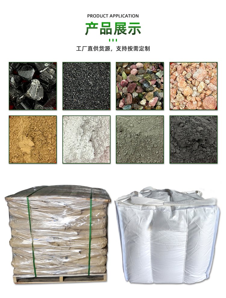 滑石粉、电气石、石英砂、金刚砂、氧化铁、石墨粉、陶瓷球、膨润土、矿化球、高岭土、硅藻土、云母、氧化铁颜料、托玛琳球、防火涂料、岩片、仿瓷沙、纤维、火山石、铁粉、钙粉、远红外粉、玻璃微珠、夜光石、雨花石
