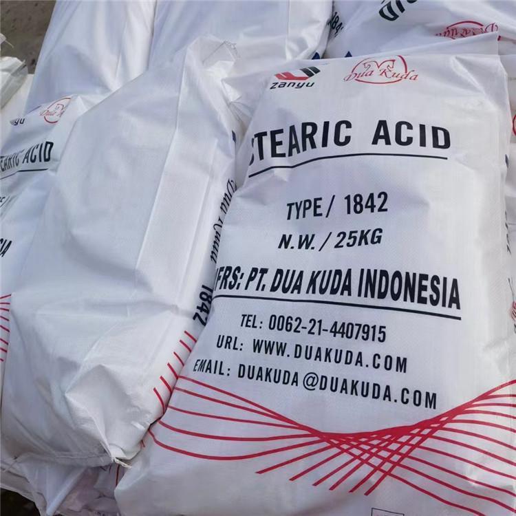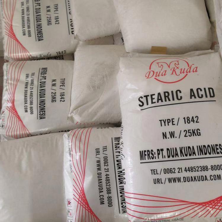 硬脂酸是自然界广泛存在的一种脂肪酸,几乎所有油脂中都有含量不等的硬脂酸,在动物脂肪中的含量较高,如牛油中含量可达24%,植物油中含量较少,茶油为0.8%,棕榈油为6%,但可可脂中的含量则高达34%。工业硬脂酸的生产方法主要有分馏法和压榨法两种。在硬化油中加入分解剂,然后水解得粗脂肪酸,再经水洗、蒸馏、脱色即得成品。同时副产甘油。
