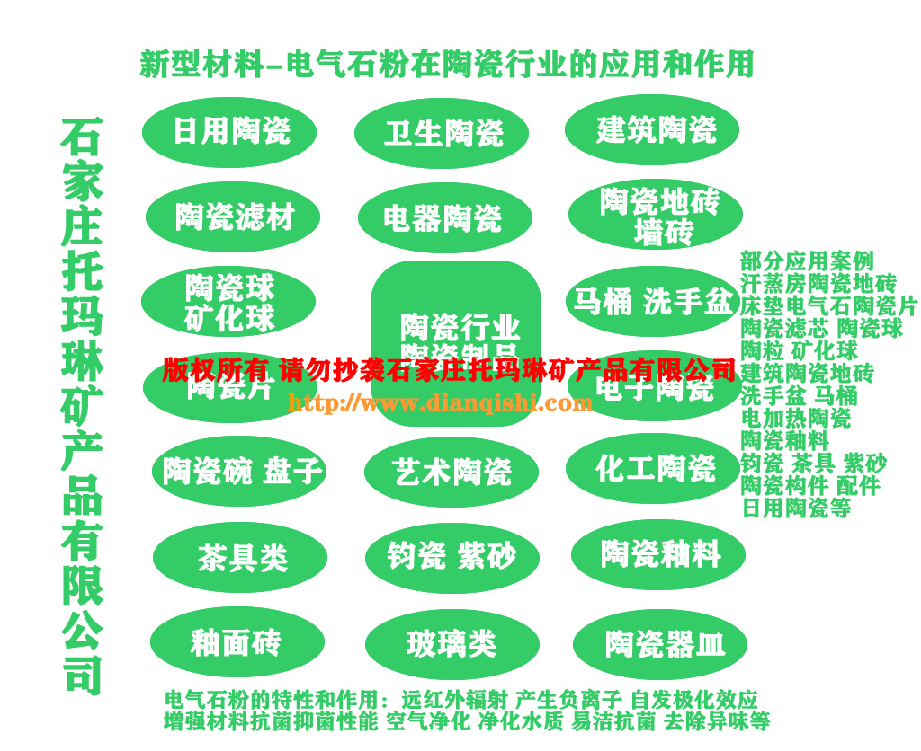 电气石粉根据用途不同,我单位按粒度不同主要有电气石粉、超细电气石粉、纳米电气石粉。适用行业涉及:环抱、卷烟、涂料、纺织、化妆品、净化水质、净化空气、防电磁辐射、保健品等。下面根据其应用行业情况介绍如下: