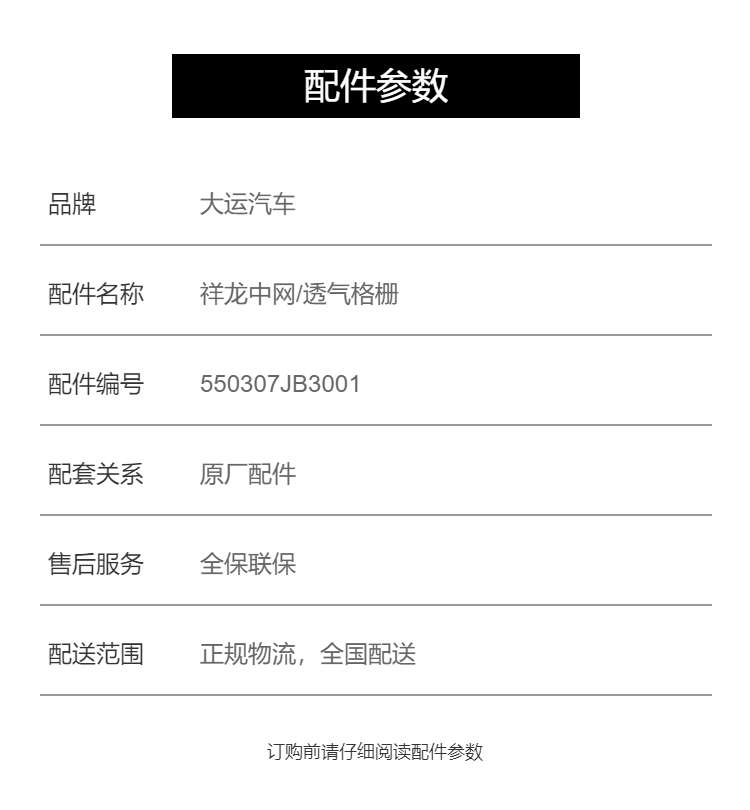 大运祥龙中网/透气格栅_厂家授权配件中心库_原厂配件_全国联保