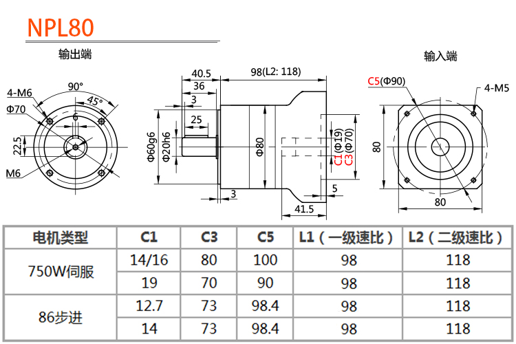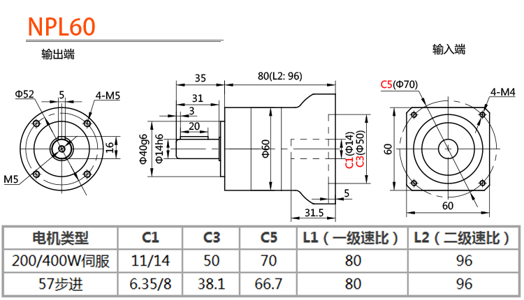 诺瑞精密行星减速机57 60 86 130步进伺服电机齿轮箱50W400W1KW器