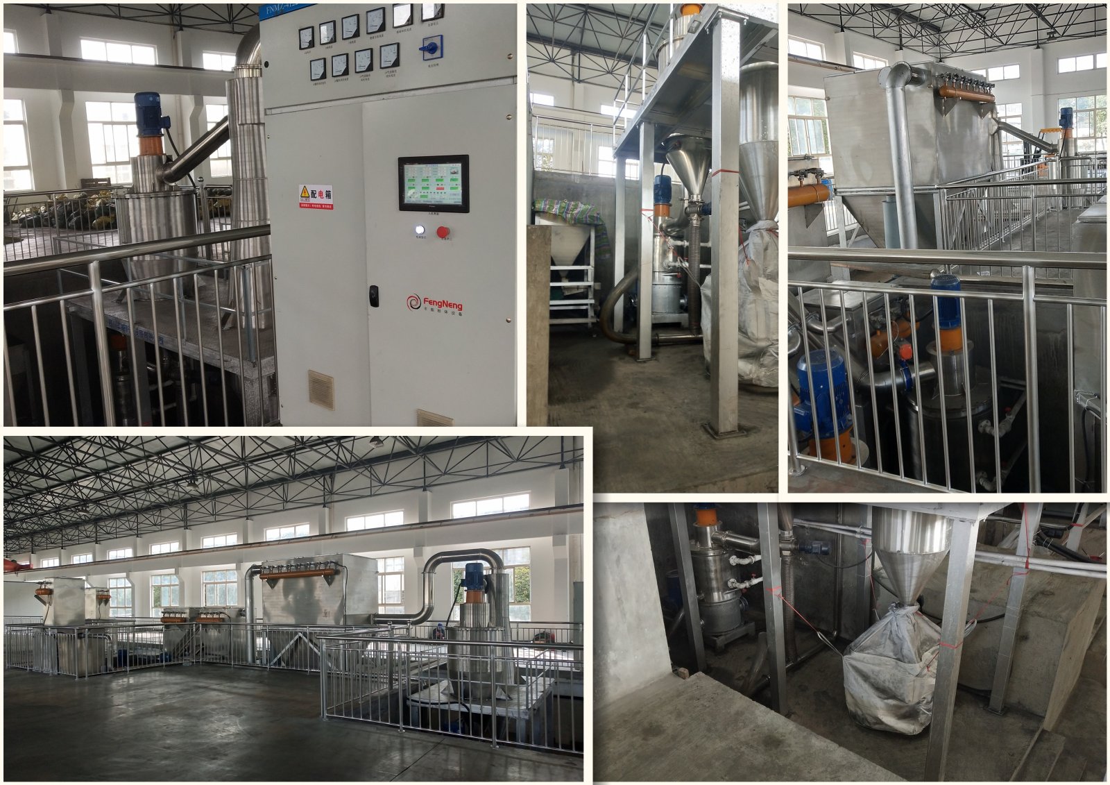该生产线全部采用不锈钢制作,由磨粉机、球化设备以及气流输送系统三大组件组成。全系统采用PLC控制,一键启停,一点投入原料,一点收集破碎球化后的粒度分布合格、颗粒形貌合格、振实密度和比表面积合格的成品,其间的加料、破碎分级、球化投料、球化整形、半成品及成品输送等全部自动完成。可加工D50=8-22微米间、并同时满足D10和D90粒度分布的任意粒度要求,综合成品率最高可至85-90%左右。