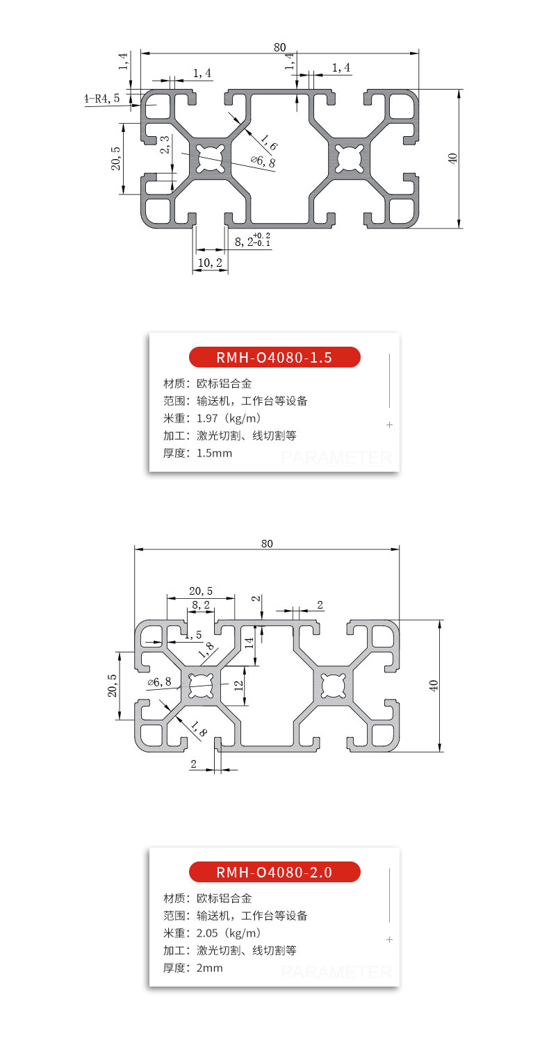 重 庆工业铝型材 欧标2020系列 铝材定制流水线框架 蓉美华