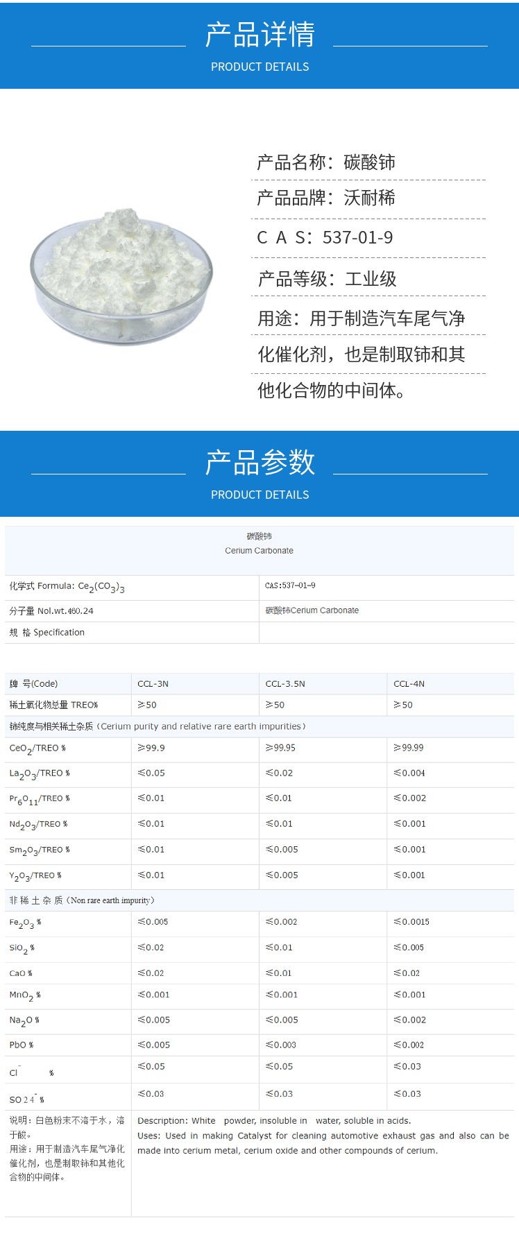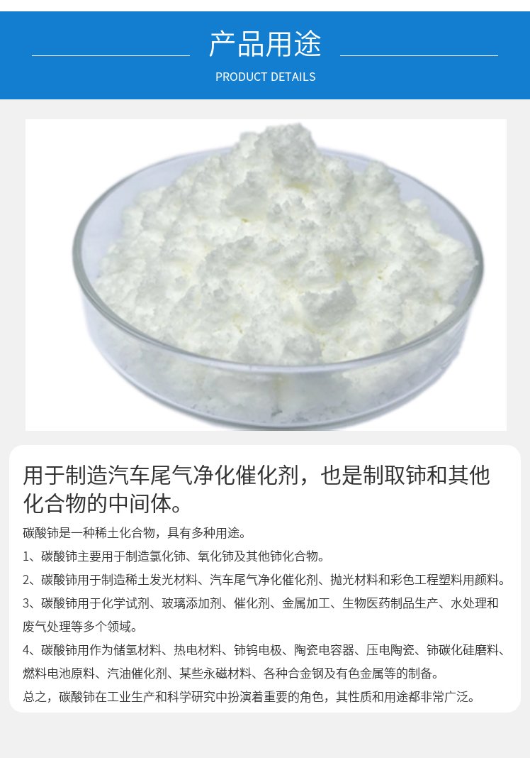 沃耐稀 白色粉末不溶于水 碳酸铈 制造汽车尾气净化催化剂 现货充足