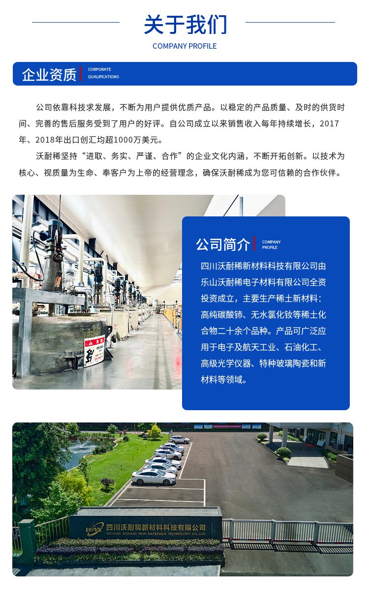 高纯碳酸铈、氢氧化铈、无水氯化镧、无水氯化铈、无水氯化钕等二十余个品种