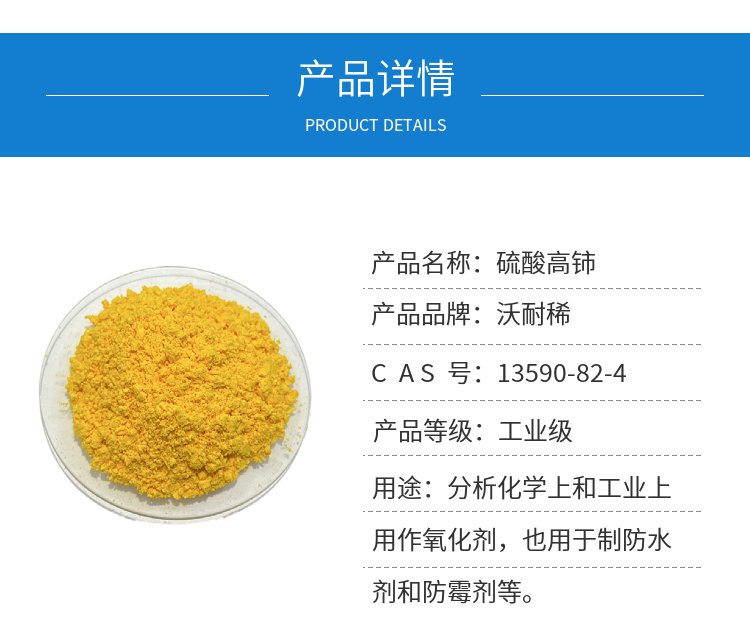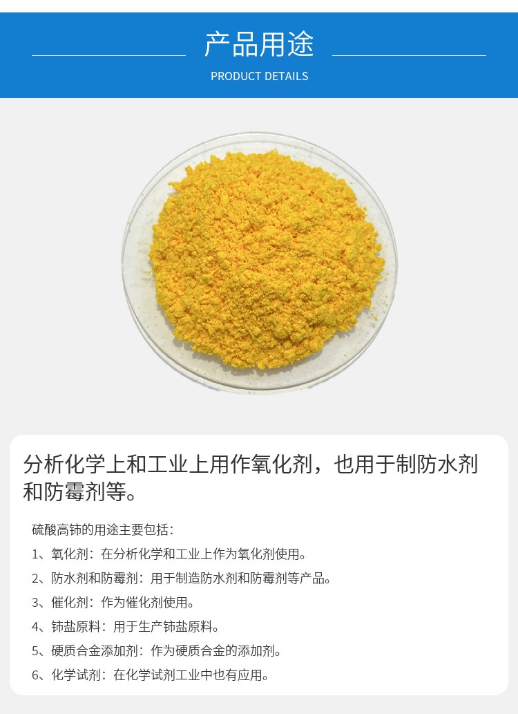 金属表面钝化可用 硫酸高铈 分析化学上用作氧化剂 可提供样品