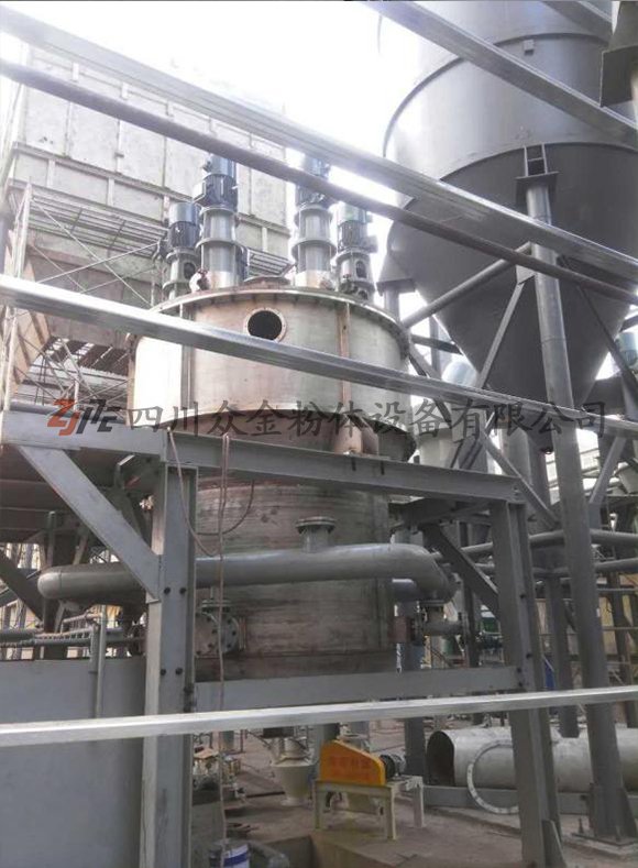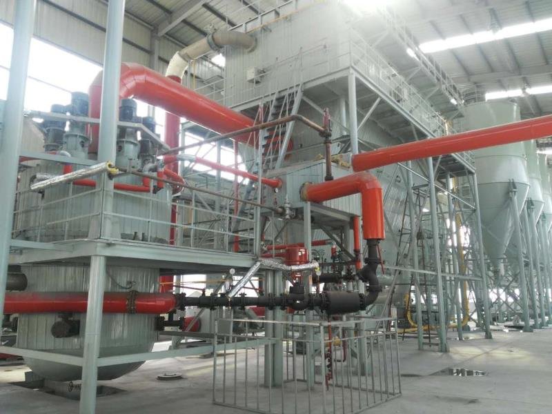 蒸汽动能磨是利用过热蒸汽经过同轴心喷嘴将颗粒加速、并进行碰撞粉碎,粉碎后的物料经过分级机分级,合格粉料进入后面的收集系统收集,不合格物料返回粉碎机继续被粉碎。整个系统蒸汽保持在过热状态,生产在全干法下进行。