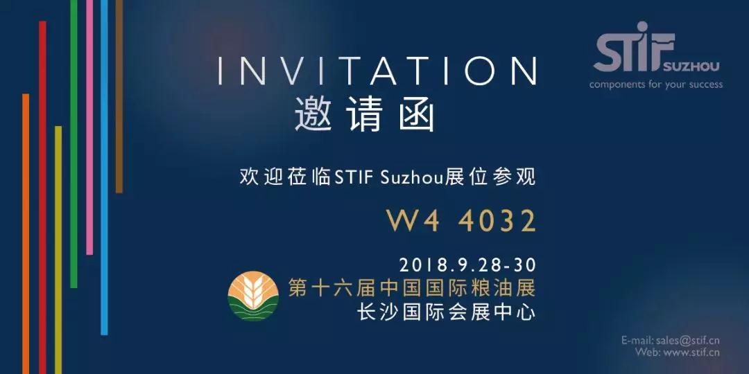 “第十六届中国国际粮油产品及设备技术展示交易会” 将于2018年9月28-30日在长沙国际会展中心举办,斯缇福机械(苏州)有限公司(股票代码:691677)应邀参展。