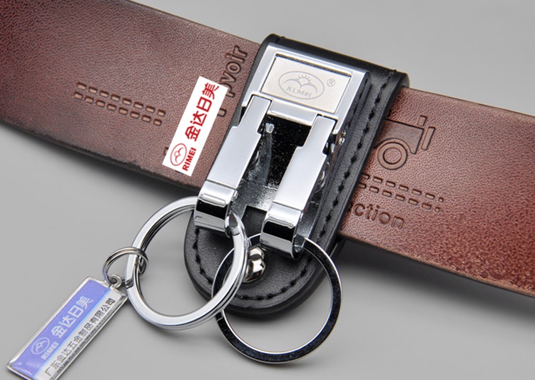 金达日美8844皮质钥匙扣 穿在皮带上,两个钥匙圈都是可以拿下来的