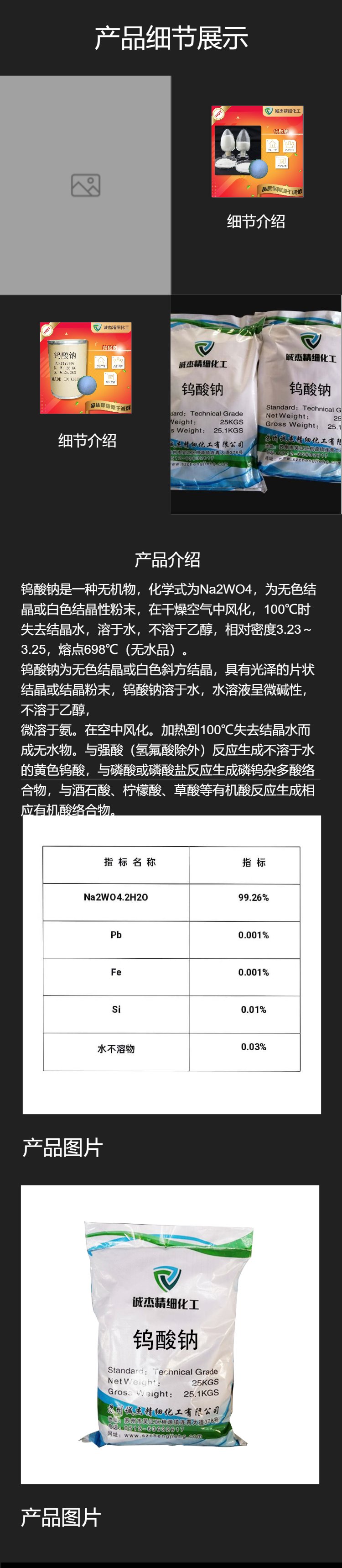 钨酸钠 诚杰 工业级 有机化工原料 催化剂 合成材料助剂 99%含量