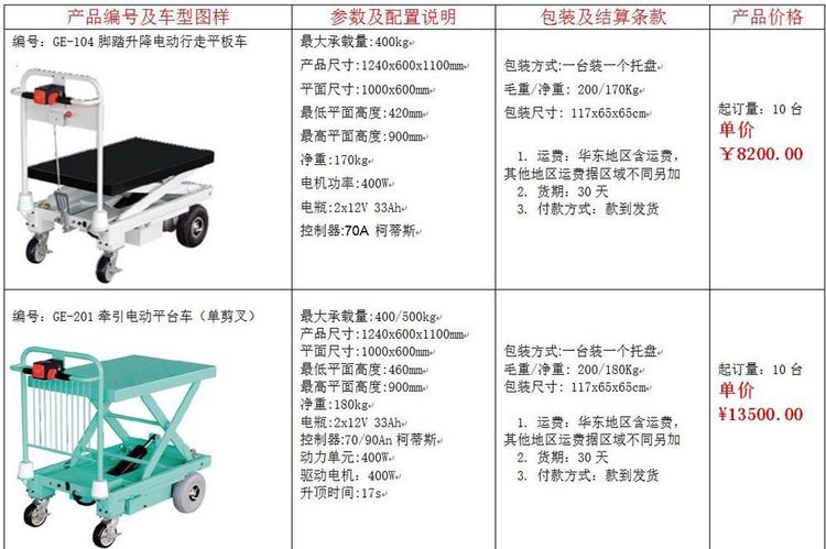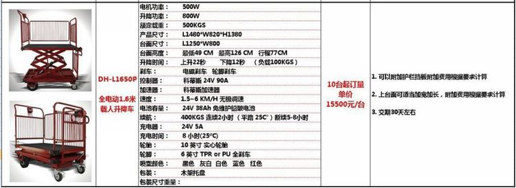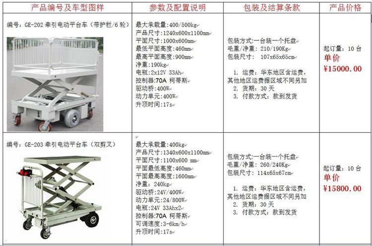 搬运车、手推车、吊机、单臂吊、轨道平车、牵引车、平板拖车、电动平板车、平台车、堆高车、铝合金升降机、高空作业平台