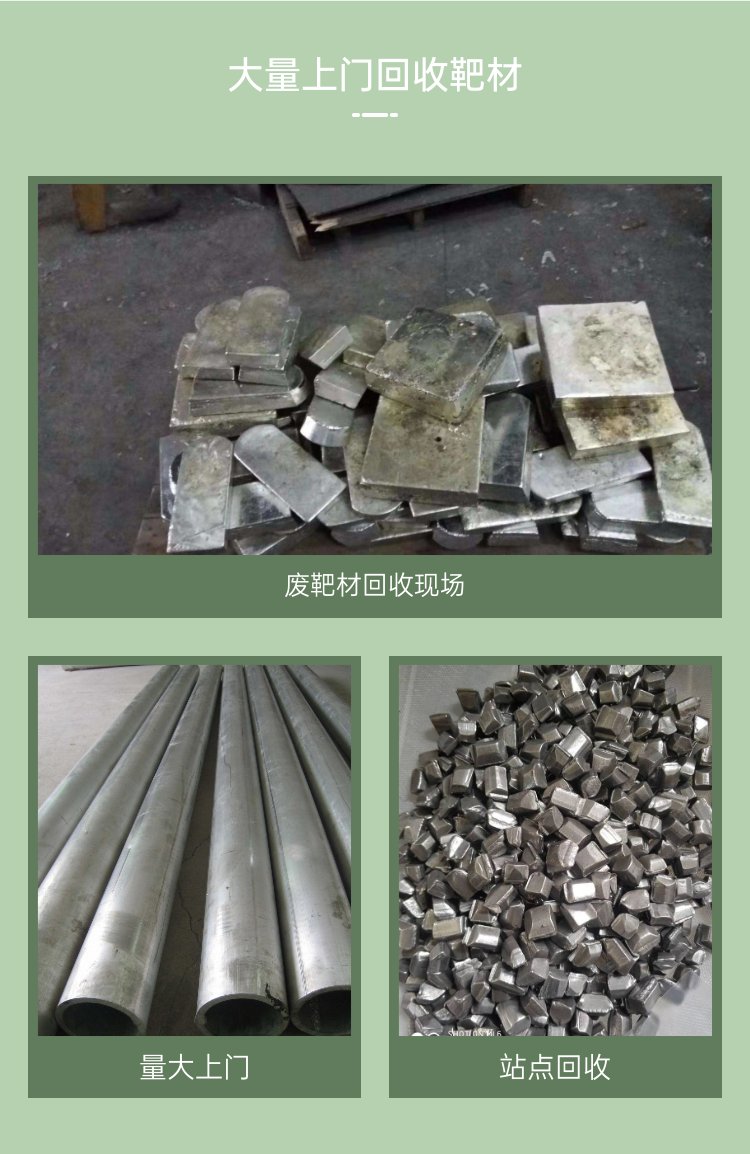 靶材废、高速钢、金刚线、金属铍、锗棒废、烟筒料、铟丝珠、锡膏废、铟上门、镍回收、硅管废、铟金属、回收ito、废金属、铟废料、钼靶材、废铜板、废锡线、钽靶材、山铟废、铟合金、ito颗粒、收购镍、化铟锡、钼管废