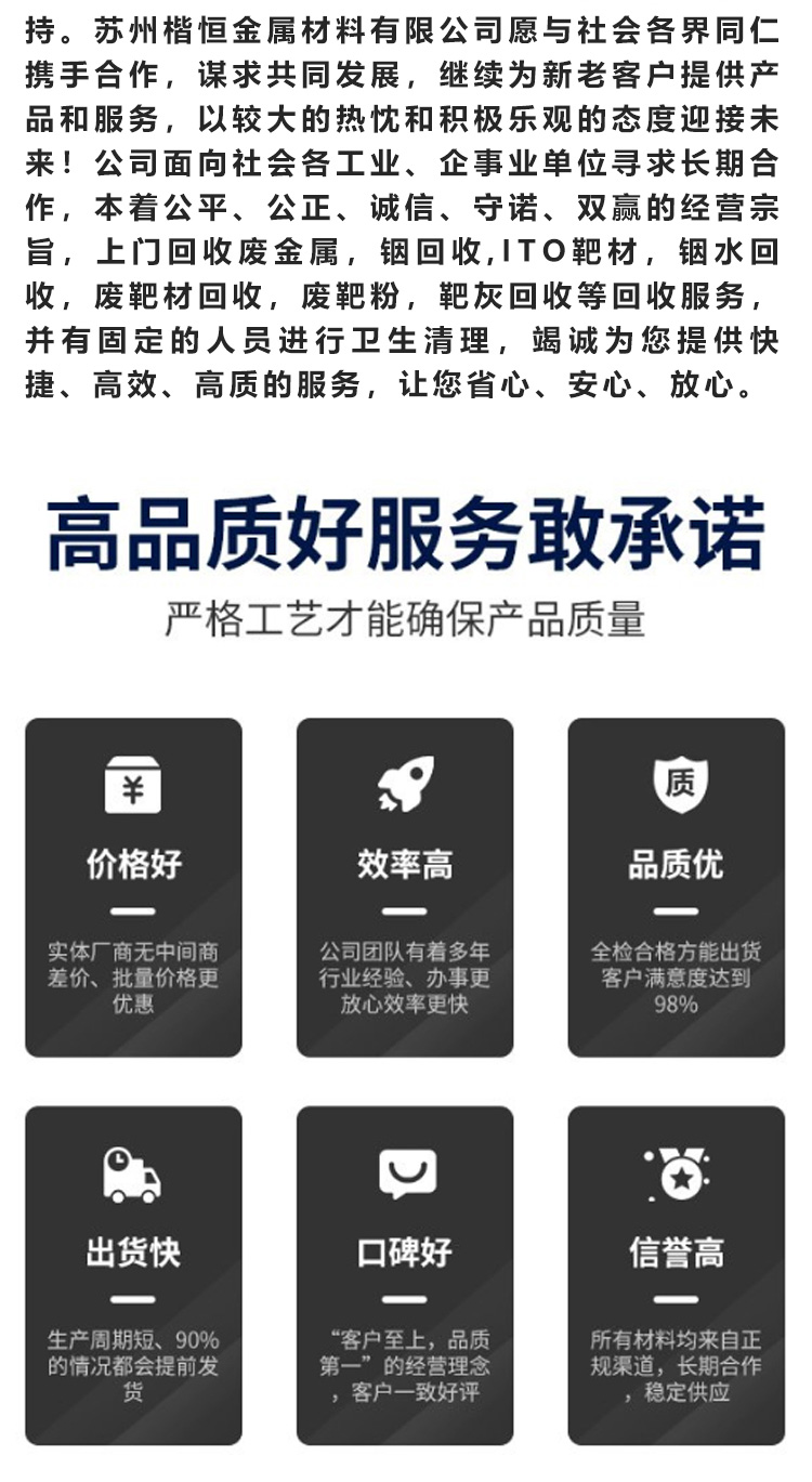 靶材废、高速钢、金刚线、金属铍、锗棒废、烟筒料、铟丝珠、锡膏废、铟上门、镍回收、硅管废、铟金属、回收ito、废金属、铟废料、钼靶材、废铜板、废锡线、钽靶材、山铟废、铟合金、ito颗粒、收购镍、化铟锡、钼管废