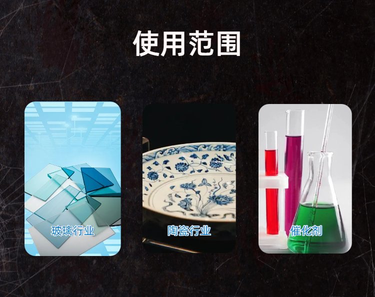 硼化钆、氯化镱、硼化钕、抛光粉、金属钇、金属钆、金属钛、铝箔袋、硫酸铯、碳酸铷、催化剂、硫酸锶、氧化碲、碳酸镧、碘化铯、氧化铝、醋酸铈、醋酸铒、氯化钕、氧化铈、氟化铕、添加剂、氮化铈、氧化硼、氧化钆