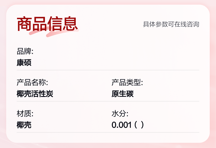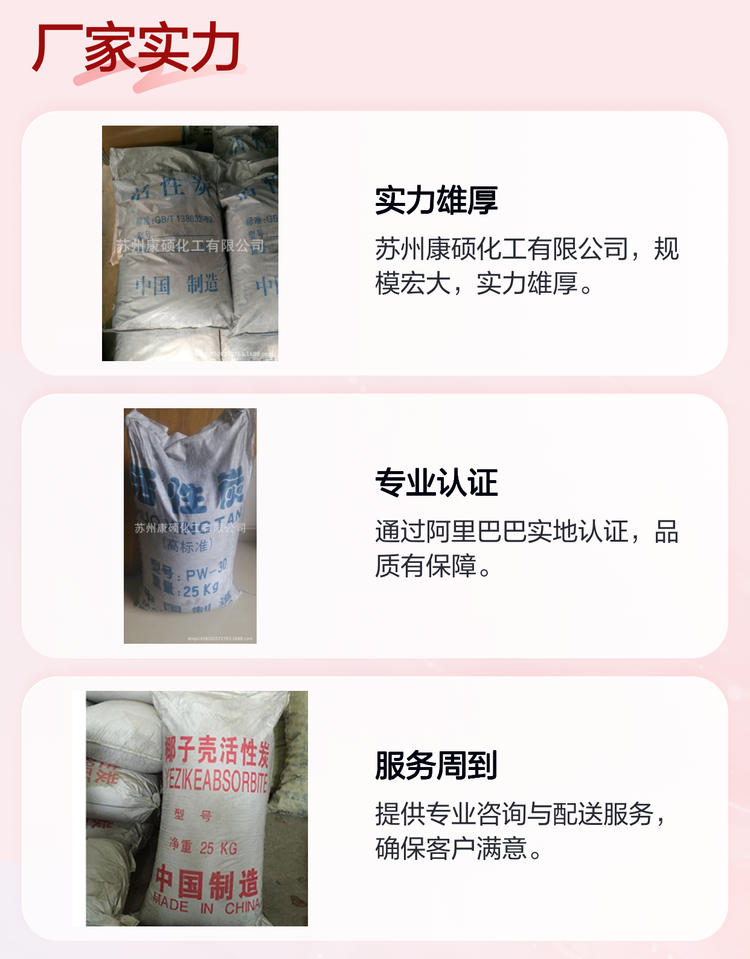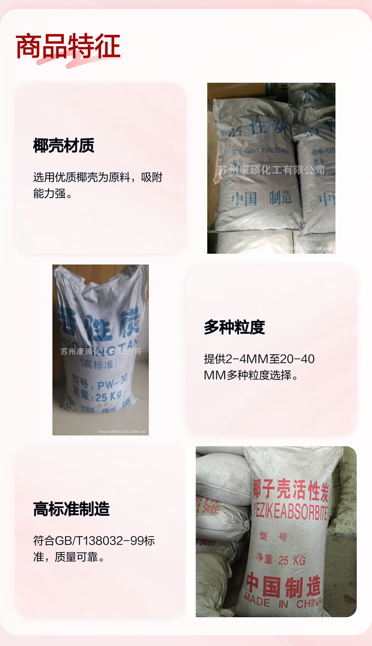 康硕品牌椰壳活性炭2-4MM 20-40MM 粒度325目 水处理空气净化用