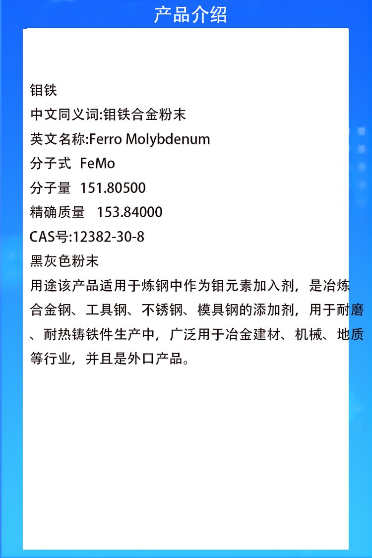 启航 钼铁 钼元素加入剂 金属模具添加剂 12382-30-8
