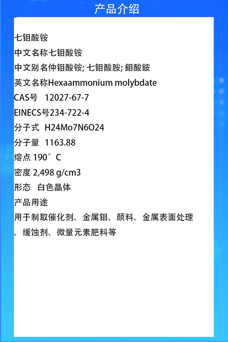 启航 七钼酸铵 金属表面处理剂缓蚀剂 12027-67-7