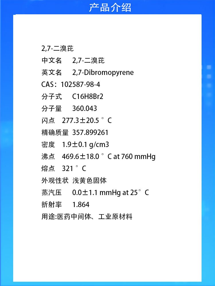 启航 2,7-二溴芘 有机中间体 工业级原料 102587-98-4