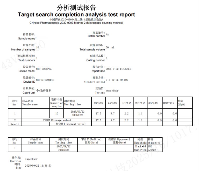 结合本次检测实例,YH-MIP-0205Pro全自动显微计数法不溶性微粒分析仪在药包材质量控制中展现出核心价值: