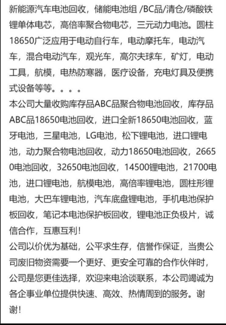 远洋上门回收废旧锂电池 电池正负极片 电池厂废料 有意联系