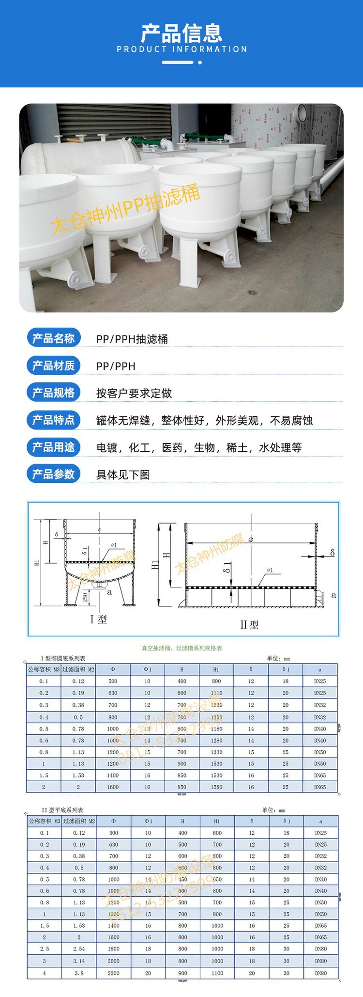 离子交换柱、PPH储罐、PP储罐、净化塔、换热器、吸收器、真空机组、pp风机、pp搅拌罐、PPH搅拌罐、PP真空罐、PP抽滤桶