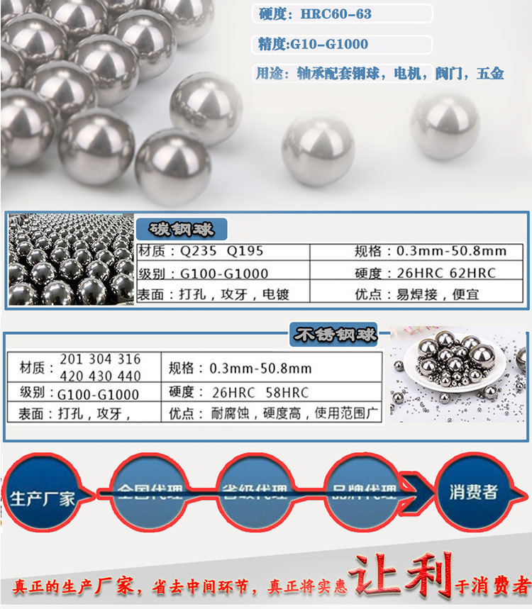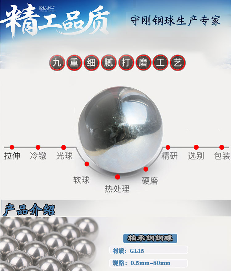 厂家直供GCr15 轴承钢球 3040.5mm-90mm高精度实心不锈钢珠可打孔