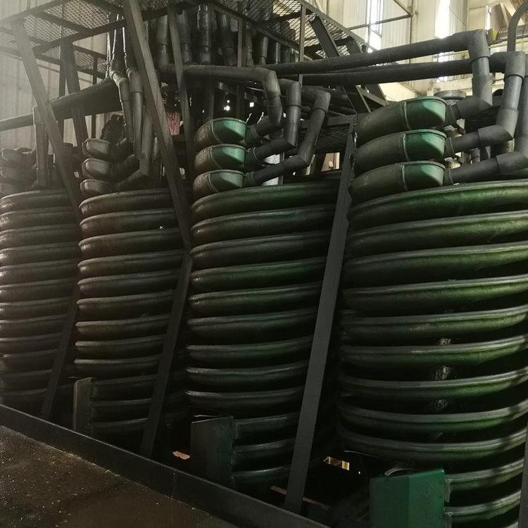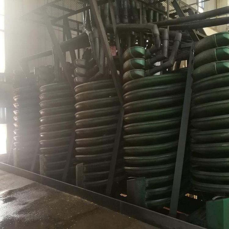 2、螺旋溜槽选别过程稳定,容易控制。给矿体积量为LL-900每头每小时1.2-1.8立方米,LL-1200每头每小时2.5-3.5立方米.体积量大小可改变矿物沿螺旋槽宽度的分布特性要昼控制稳定,允许波动范围应小于±5%,一般采用恒压给矿。