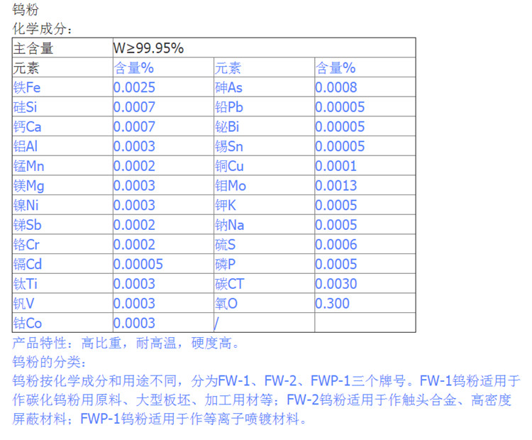 结晶钨粉、还原铁粉