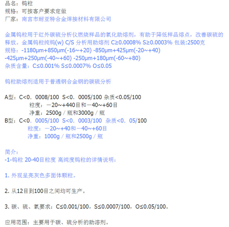 结晶钨粉、还原铁粉