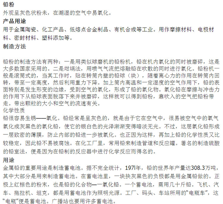 金属铅粉 黑铅粉