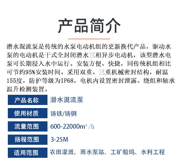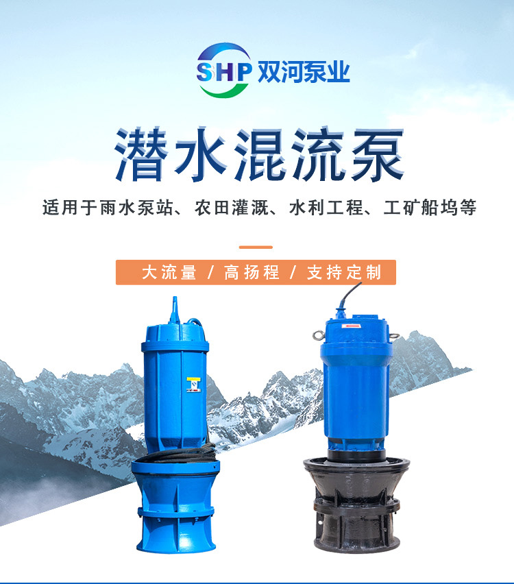 大流量_大口经 双河 QHB型号 潜水混流泵 安装便捷 纯铜电机 三重密封
