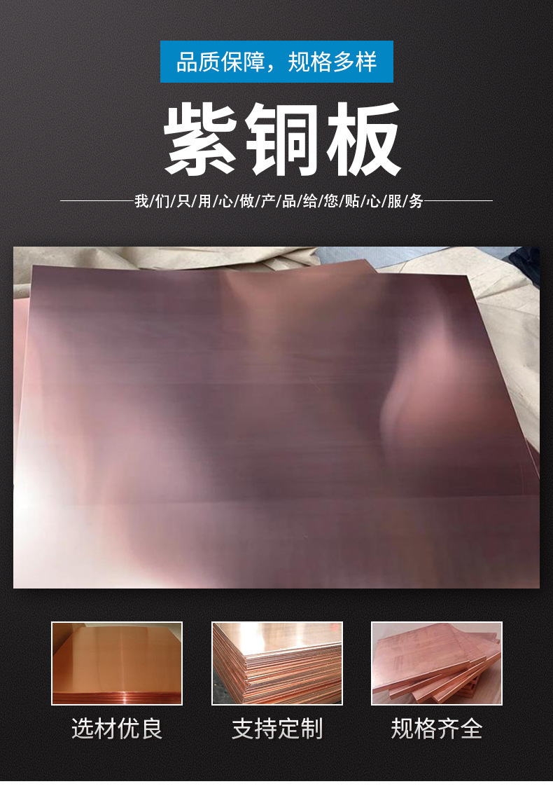 销售TU1紫铜板厂家 C1020无氧铜铜板 纯度高导电性能好铜带