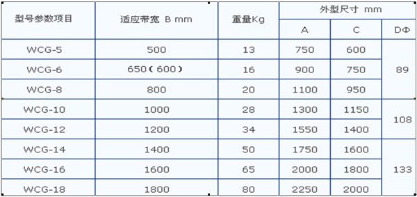 详细信息 WCG系列无磁托辊是一种非磁性直线平行托辊。它采用进口无磁材料专门加工制造,安装于胶带输送机中悬挂式除铁器底部的皮带下面,无磁托辊安装时高于皮带输送机底部平托辊50-150mm,与悬挂式除铁器配套使用,当物料经过无磁托辊上方时,物料处于疏散状态,夹杂在物料中部或底部的铁杂质从物料中裸露出来,能够帮助除铁器有效地提高除铁率。 技术参数: