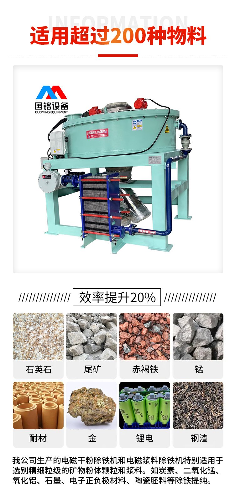 电磁干粉磁选机 釉浆 温度实时监测 应用广泛 国铭设备