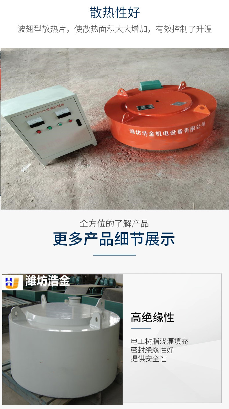 浩金 输送带专用悬挂式电磁除铁器 吸力大 密封性好