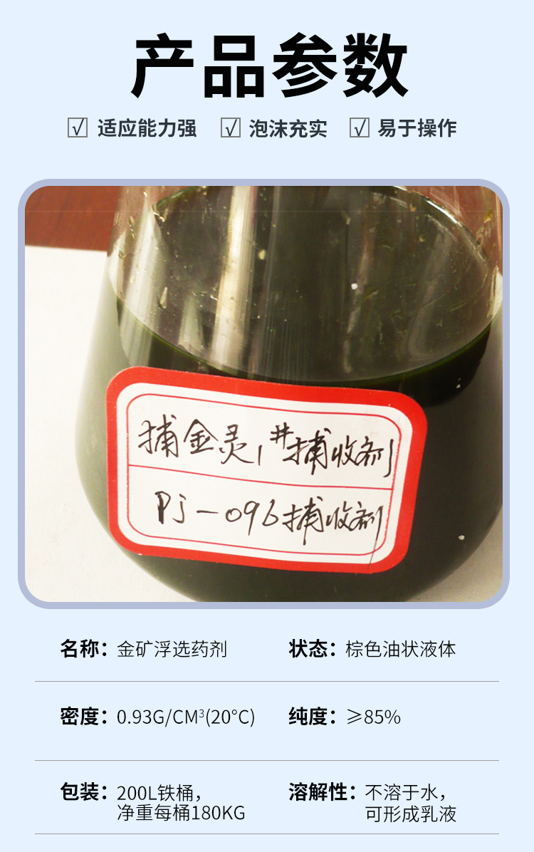 金矿浮选药剂 起泡剂 捕收剂 用量少效果好 可免费提供样品