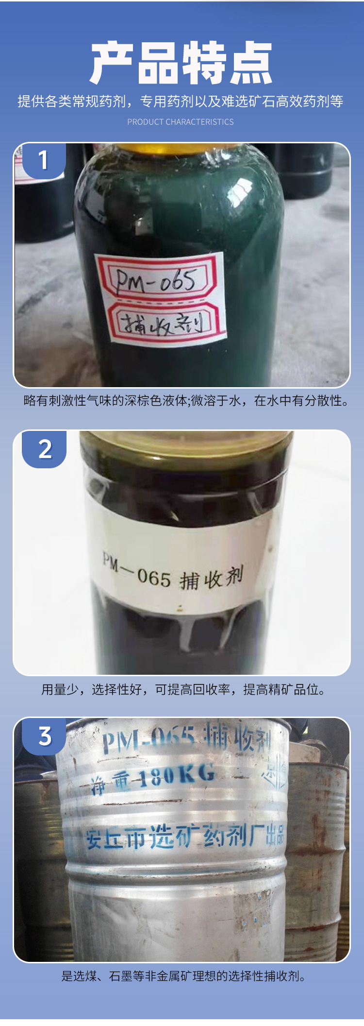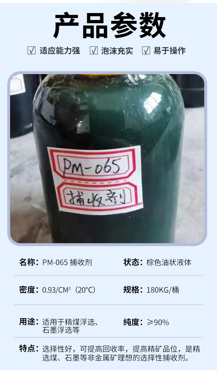 PM-065捕收剂 精煤石墨浮选药剂 用量少 回收率高 适用于非金属矿矿选
