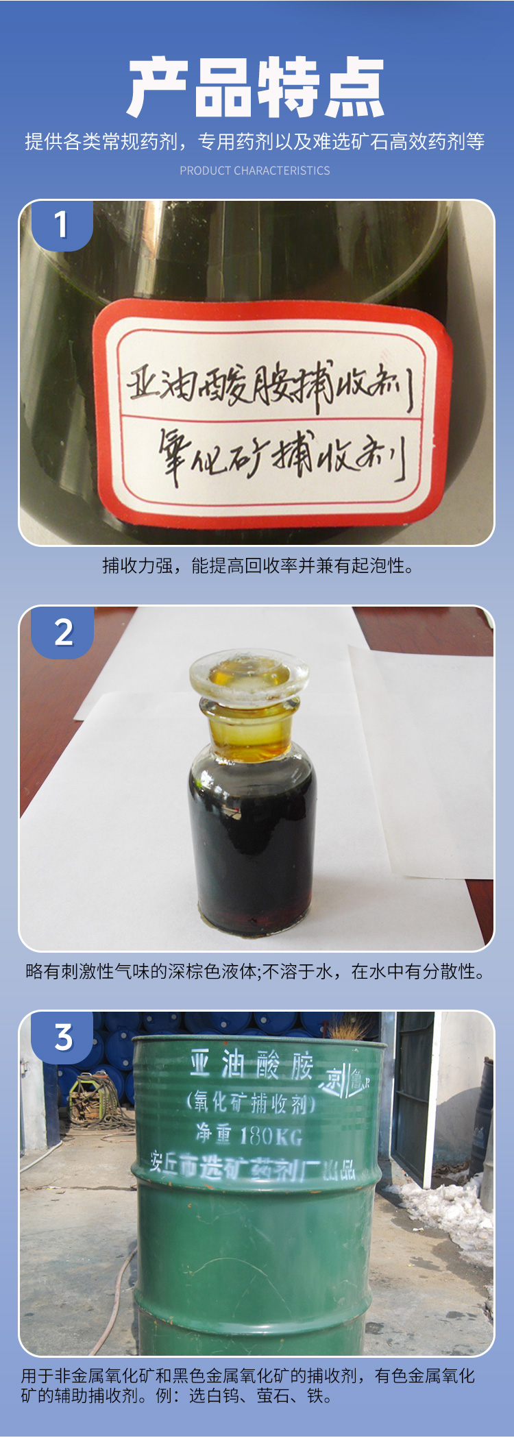 白钨矿浮选药剂 广普型氧化矿捕收剂 用于非金属氧化矿的浮选