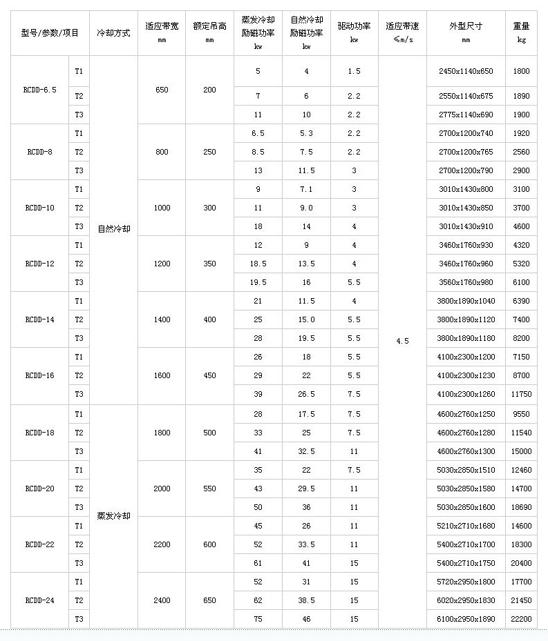 RCDD-T系列超强干式自卸式电磁除铁器,是在RCDB-T系列超强干式电磁除铁器基础上,增加了自动卸铁机构的改型产品,能够连贯自动卸铁,适用于各种恶劣环境下选用。