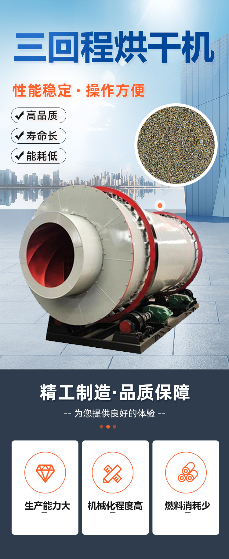 三回程沙子秸秆滚筒烘干机 多功能三筒砂石烘干设备 连续加热