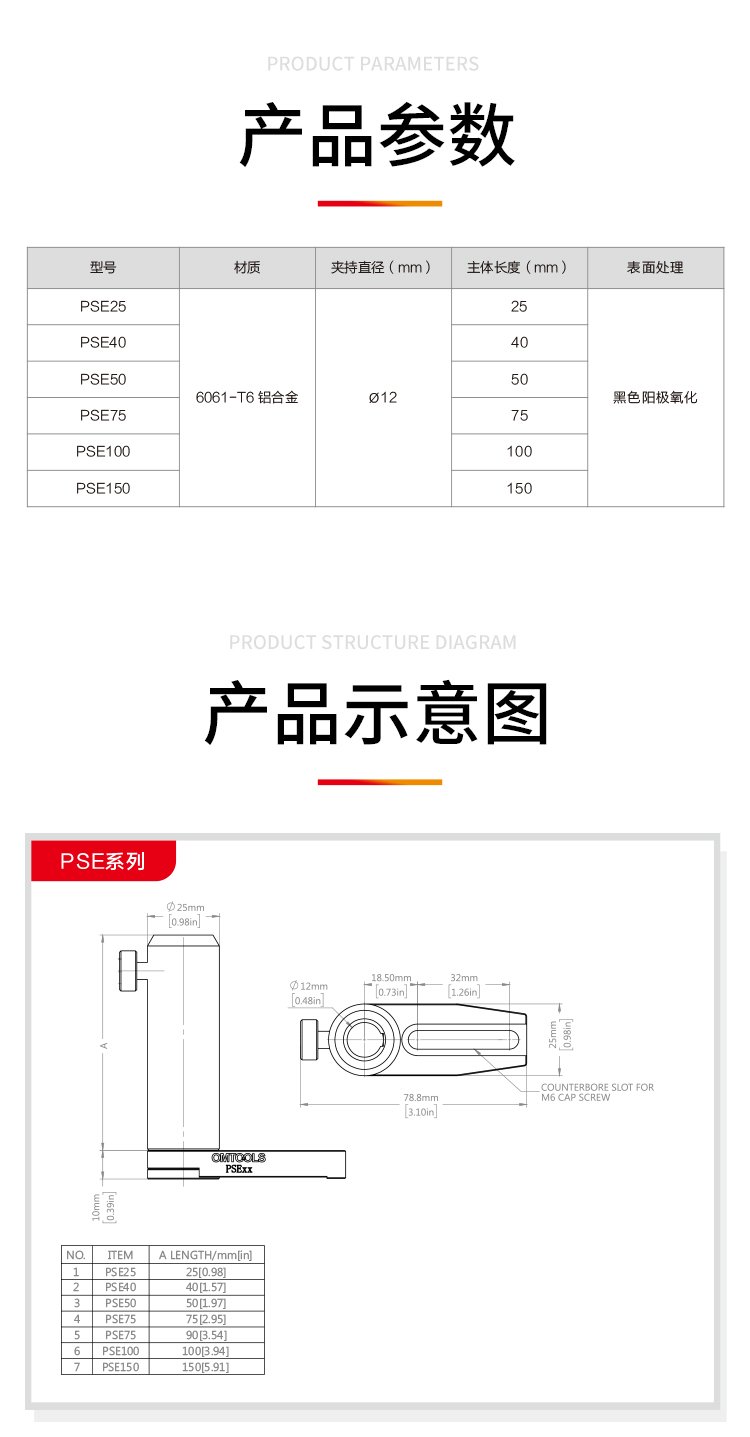 红星杨 底座可旋转光学接杆套筒PSE系列 12mm旋转套筒 6061-T6 铝合金