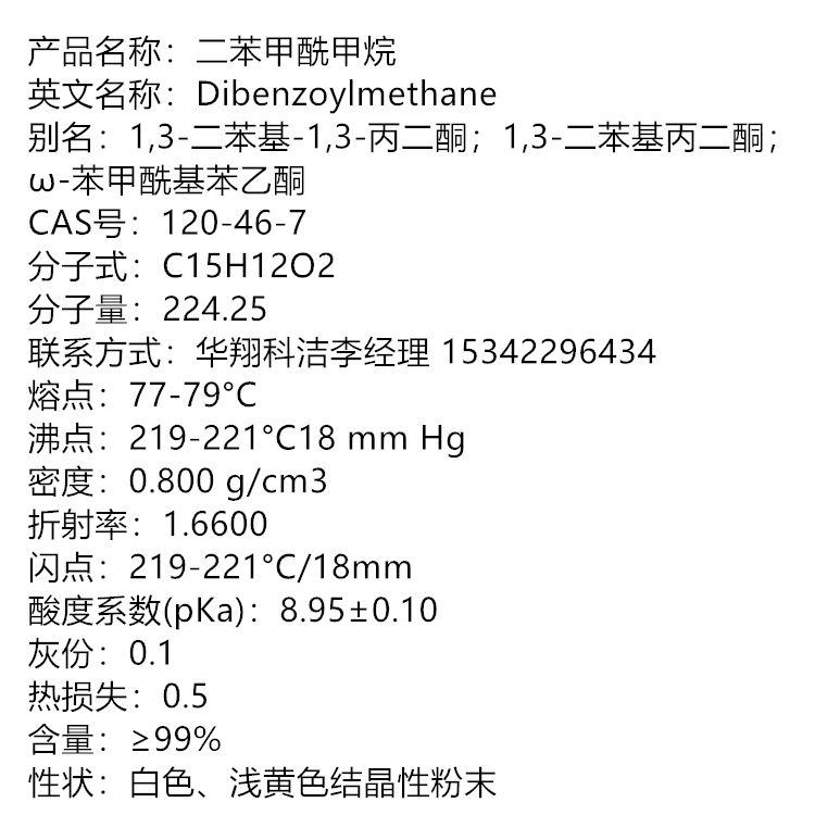 厂家供应 二苯甲酰基甲烷 120-46-7 PVC辅助热稳定剂 500g 25kg