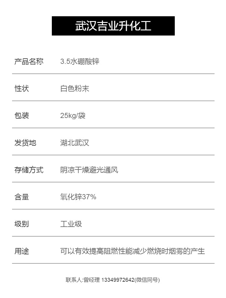 工业级3.5水硼酸锌 氧化锌含量37% 高效阻燃剂 减少烟雾 调节橡塑产品