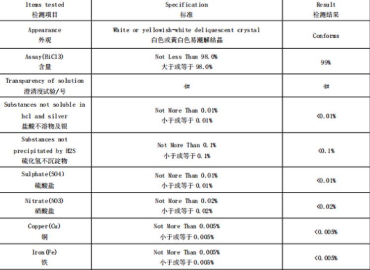 7787-60-2 三氯化铋 98% 制备铋盐 分析试剂 白色结晶 PVC光亮剂