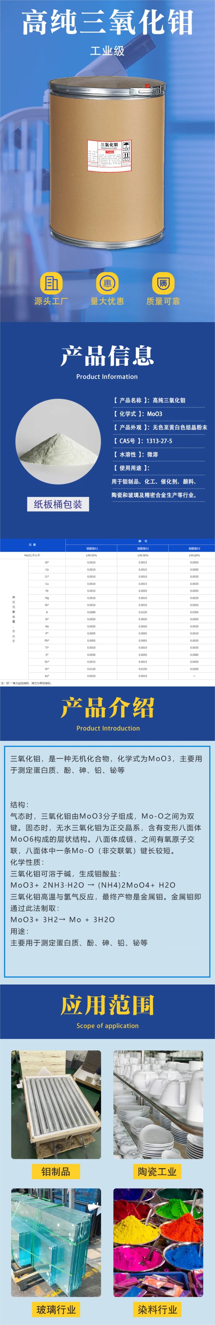 工业级三氧化钼 高纯99.9%氧化钼 陶瓷玻璃行业 高温涂料 钼盐制造