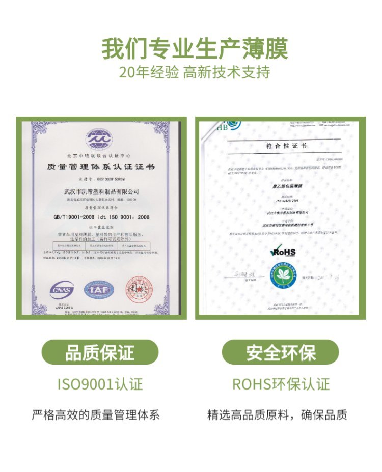 详细信息 武汉凯帝大棚膜生产厂家 农膜 聚乙烯塑料薄膜 农用塑料布 大量现货 凯帝塑料,致力于农用薄膜、电商打包防震气泡膜、及企业仓储物流防护包装膜,专业生产农膜、地膜、气泡膜、塑料薄膜、pe袋、气泡袋、胶带、缠绕膜、热收缩膜等。13554141222.