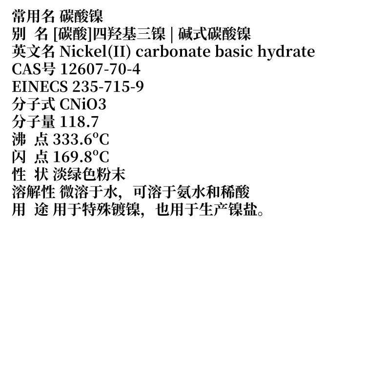 碳酸镍 12607-70-4 用于生产镍盐 全国可发 品质保证