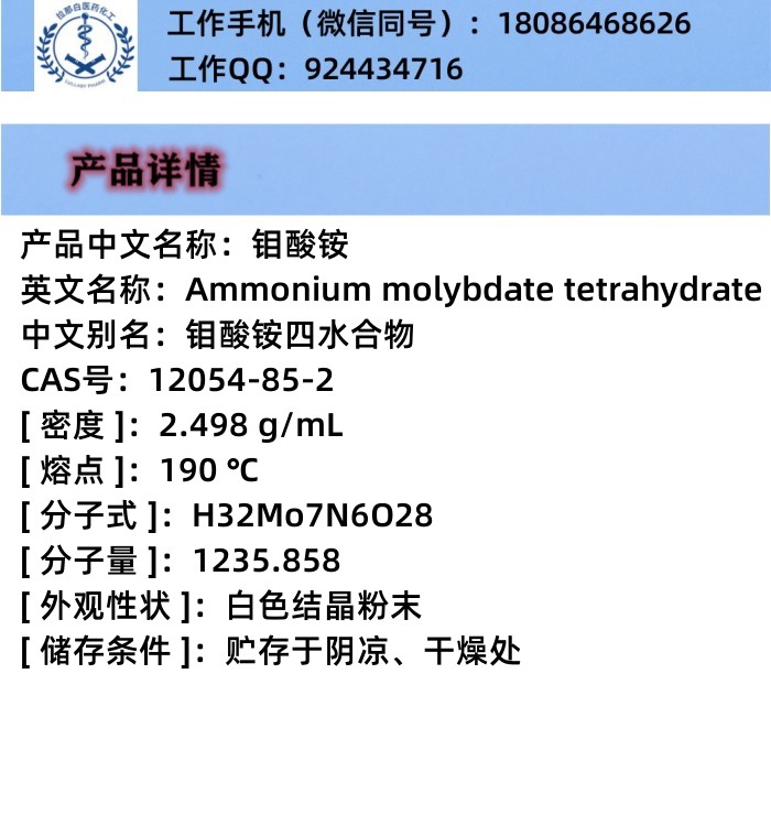 钼酸铵 12054-85-2 含量99% 1kg 25kg 厂家样品可售